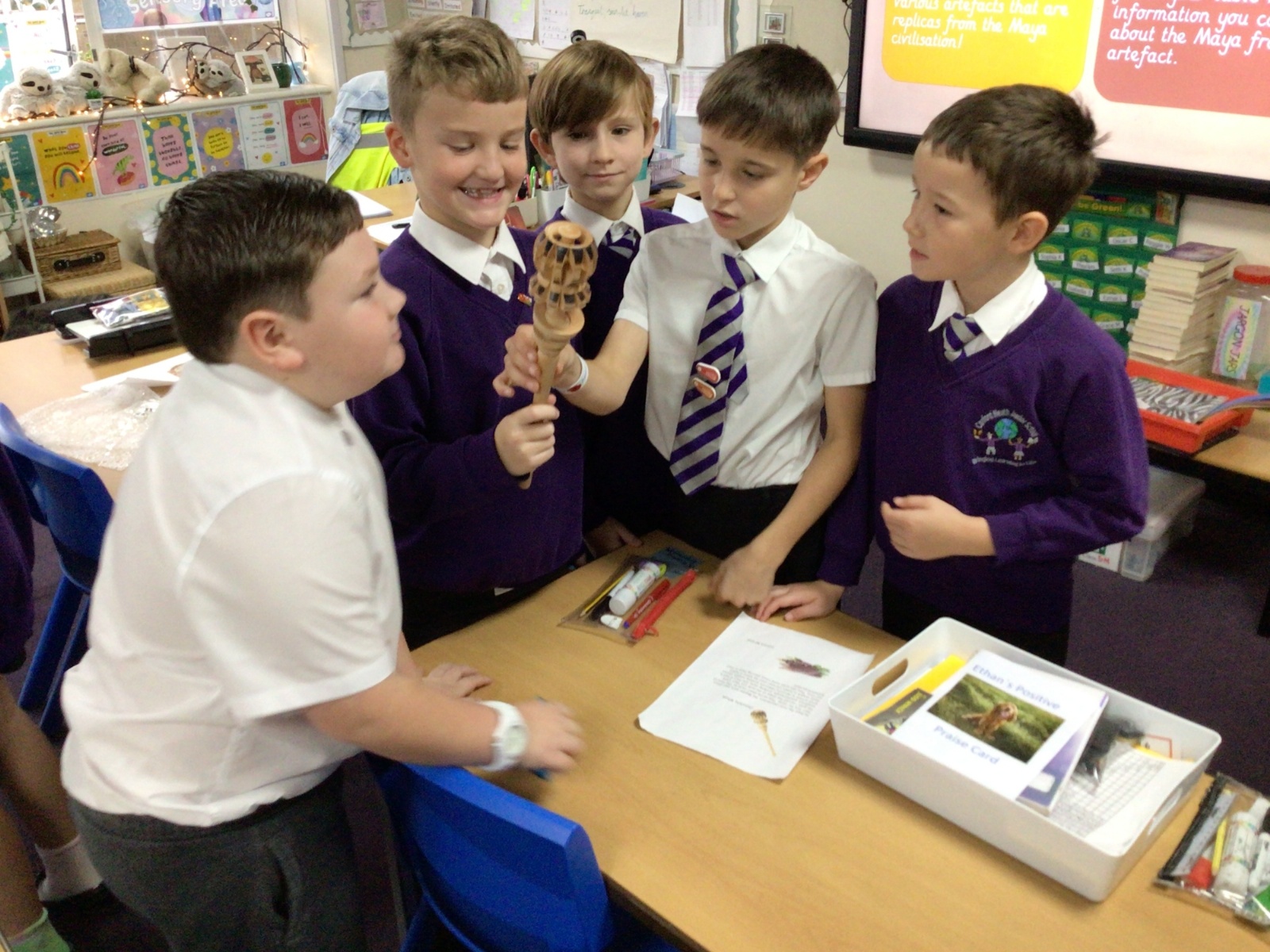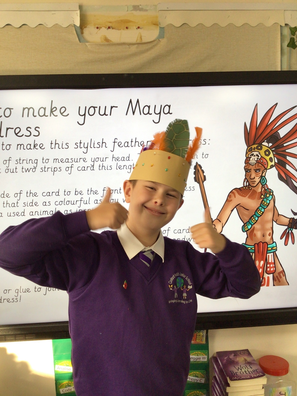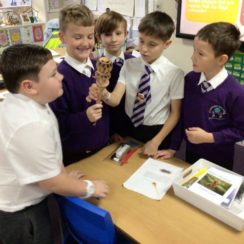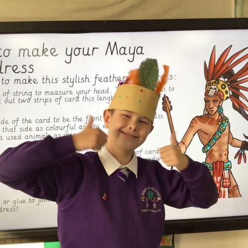 Year 5 are having fun learning about the Maya Civilisation. On their hook day, they made headdresses; looked at Mayan artefacts and found out that the Mayans invented hot chocolate!