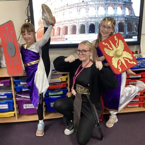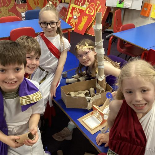 Year 3 travelled back to Ancient Rome for our Roman Hook Day! The children trained like legionaries, crafted colourful mosaics, and explored the fascinating world of Roman gods. A brilliant end to our topic!